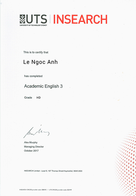 CHỨNG CHỈ ANH NGỮ QUỐC TẾ TỪ UTS INSEARCH